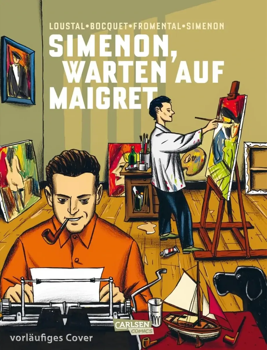 Als Titel für den Beitrag habe ich mich an dem Originaltitel orientiert. Bin mir nicht sicher, in wie weit in der Popkultur des französischen Raums das kreative Boot Simenons bekannt ist – in Deutschland geht man das Risiko nicht ein, einen Comic nach dem schwimmenden Gefährt des Autoren zu benennen. So kommt der Comic unter dem Namen »Simenon, Warten auf Maigret« auf den Markt.